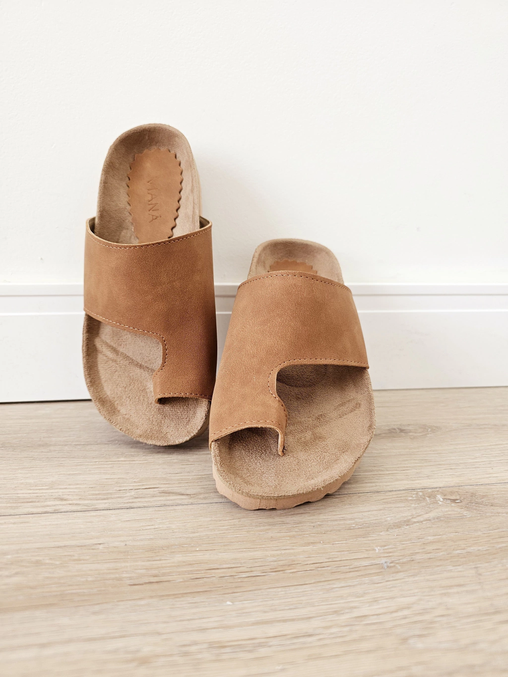 Ojota con plantilla anatomía forrada, capellada cuero vegano.
