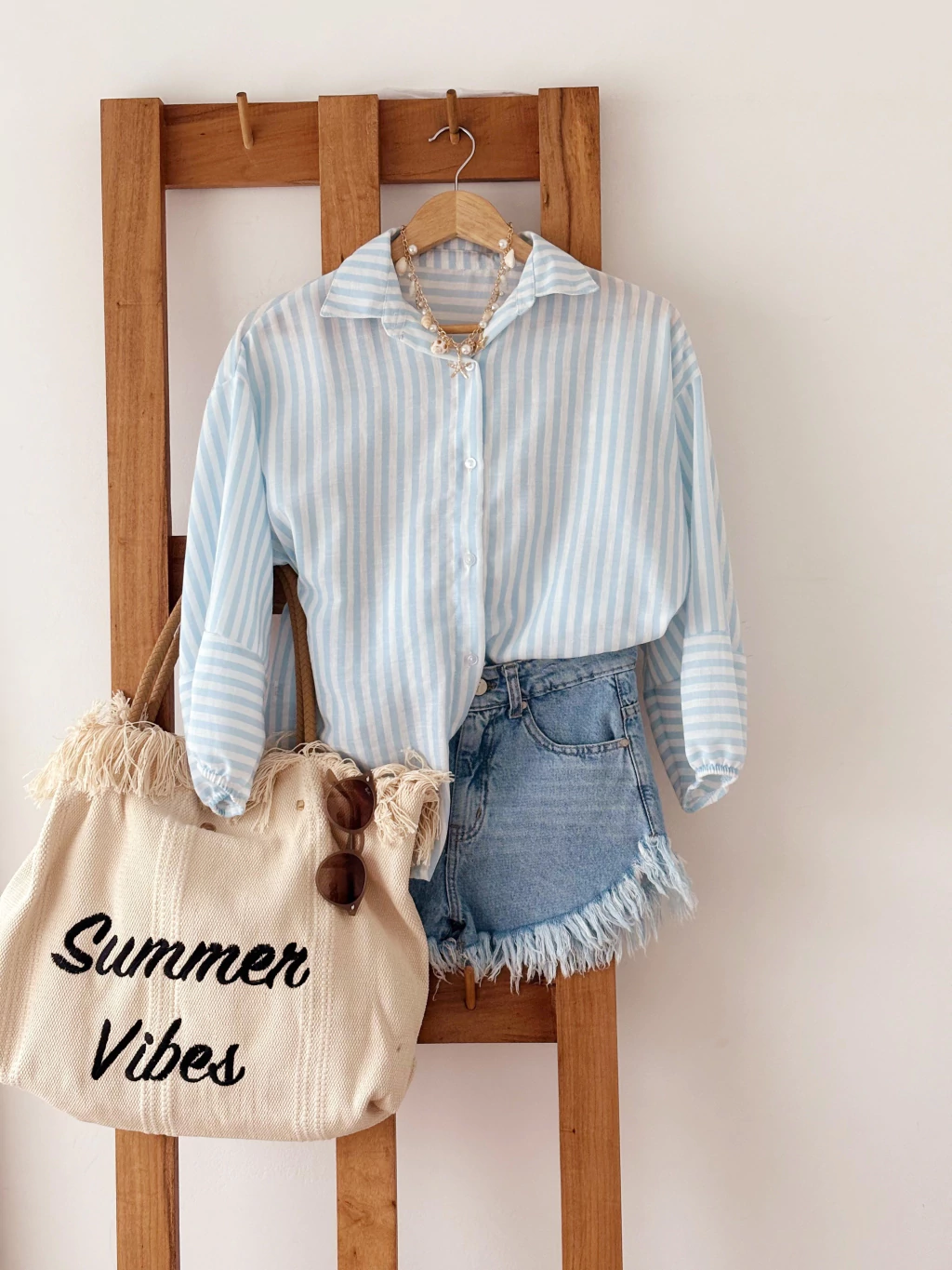Camisa rayon,  mangas 3/4 con detalle semi globo .