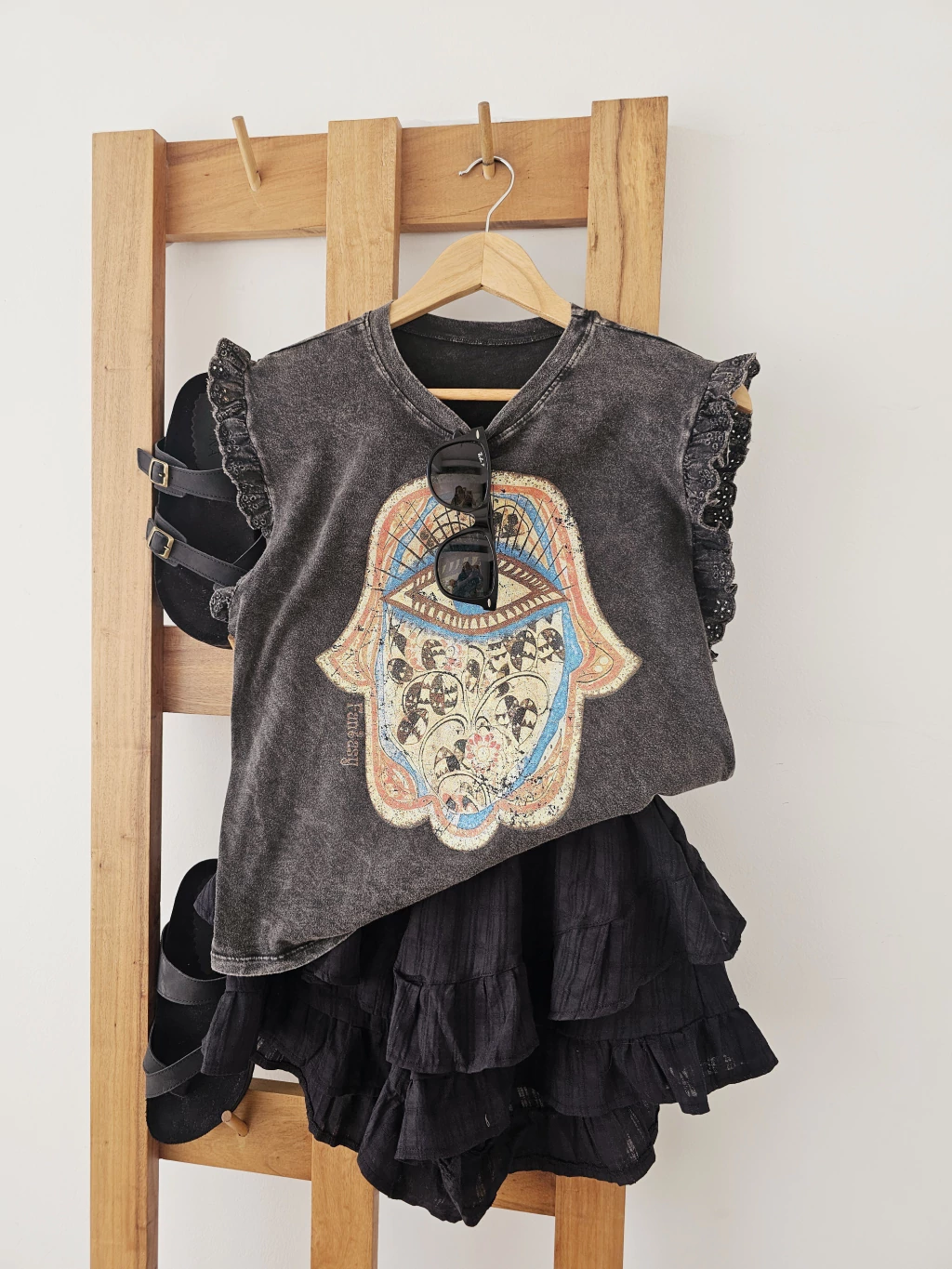 Musculosa de jersey de algodón , prelavado con detalle de broderie.