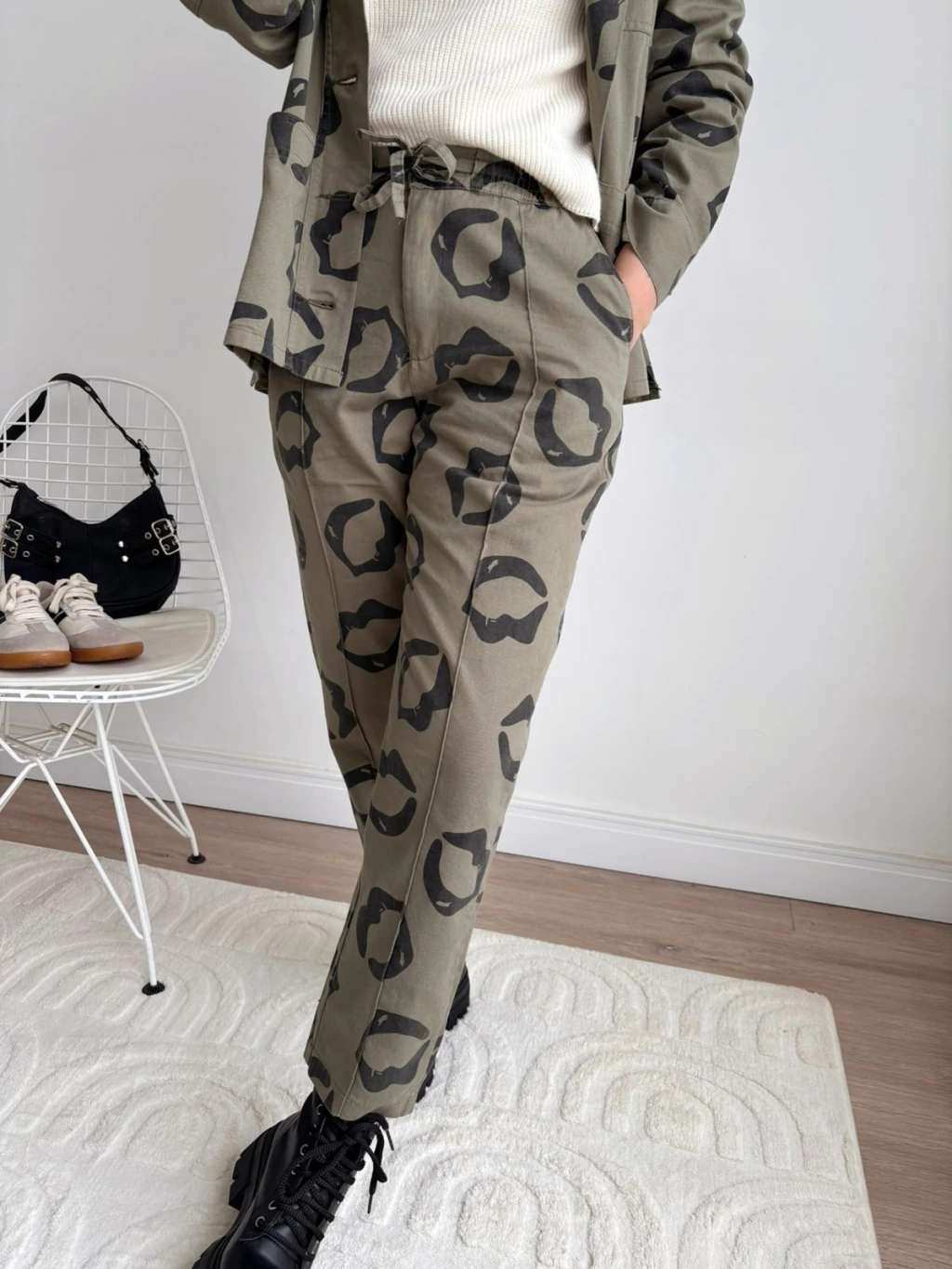 Pantalon de gabardina liviana , cintura elastizada, cierre y lazito.